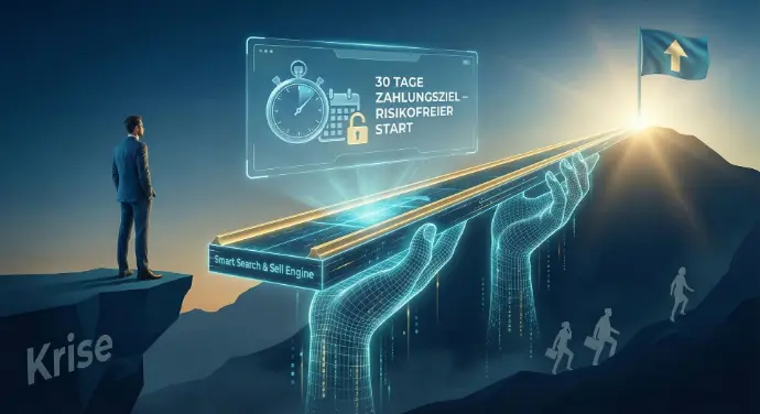 Wir sind von unserem "Smart Search & Sell"-System so überzeugt, dass wir Ihnen ein erweitertes Zahlungsziel von 30 Tagen einräumen und garantierte Fixpreise kommunizieren. Wir gehen in Vorleistung, damit Sie sofortige Marktdominanz zeigen können.